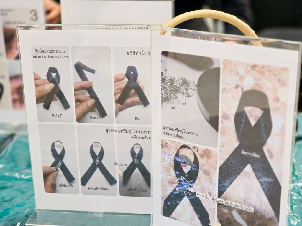 ร่วมกันประดิษฐ์ริบบิ้นเพื่อเป็นสัญลักษณ์แห่งความเคารพและอาลัยอย่างเรียบง่ายและสุภาพ