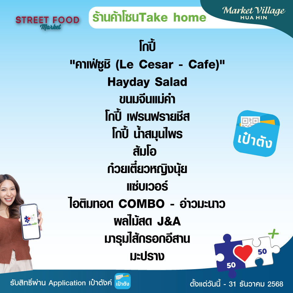 - ติดตามโปรโมชั่นดีๆ ได้ที่: Facebook Market Village Huahin