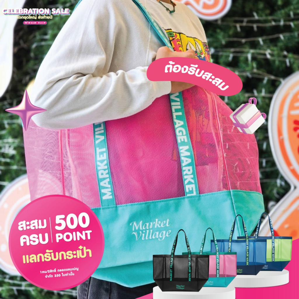 500 POINT แลกรับกระเป๋า Market Village สุดเก๋! เฉพาะงานนี้ * จำกัด 1 คน / 2 สิทธิ์ ตลอดแคมเปญ มีจำนวนจำกัดเพียง 350 ใบเท่านั้น! สามารถแลกรับได้ที่จุดประชาสัมพันธ์ ชั้น 1