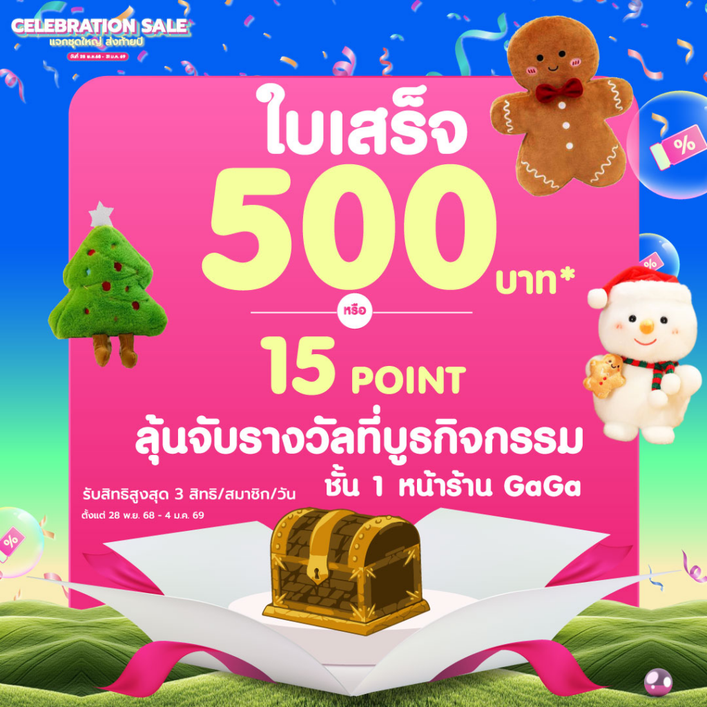 ใบเสร็จ 500 บาท หรือ 15 POINT รับสิทธิ์เล่นเกม “กล่องโชคดีหรรษา “