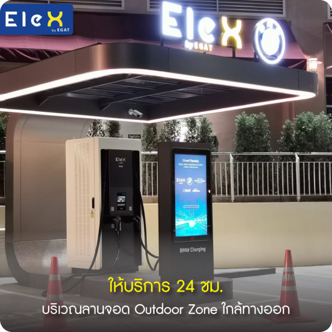 EleX by EGAT x BMW Electric Vehicle Charging Station: Market Village Hua Hin Available 24/7 for all car brands. Located at the Outdoor Zone parking area (behind Oriental Princess), near the exit of Market Village Hua Hin. Details: – Installed and managed by the Network Operator “BackEN” - Compatible with all EV brands - Equipped with both Fast Charger and Normal Charger - Delta chargers: 125 kW with 2 connectors, and 22 kW with 1 connector - Charging connectors: DC CCS and AC Type 2 (customers need to bring their own cable) - Supports simultaneous charging for 2 vehicles - Book, charge, pay, and check status all in one app: “Elexa” Location: Outdoor Zone, Near exit Service Time: 24 Hours